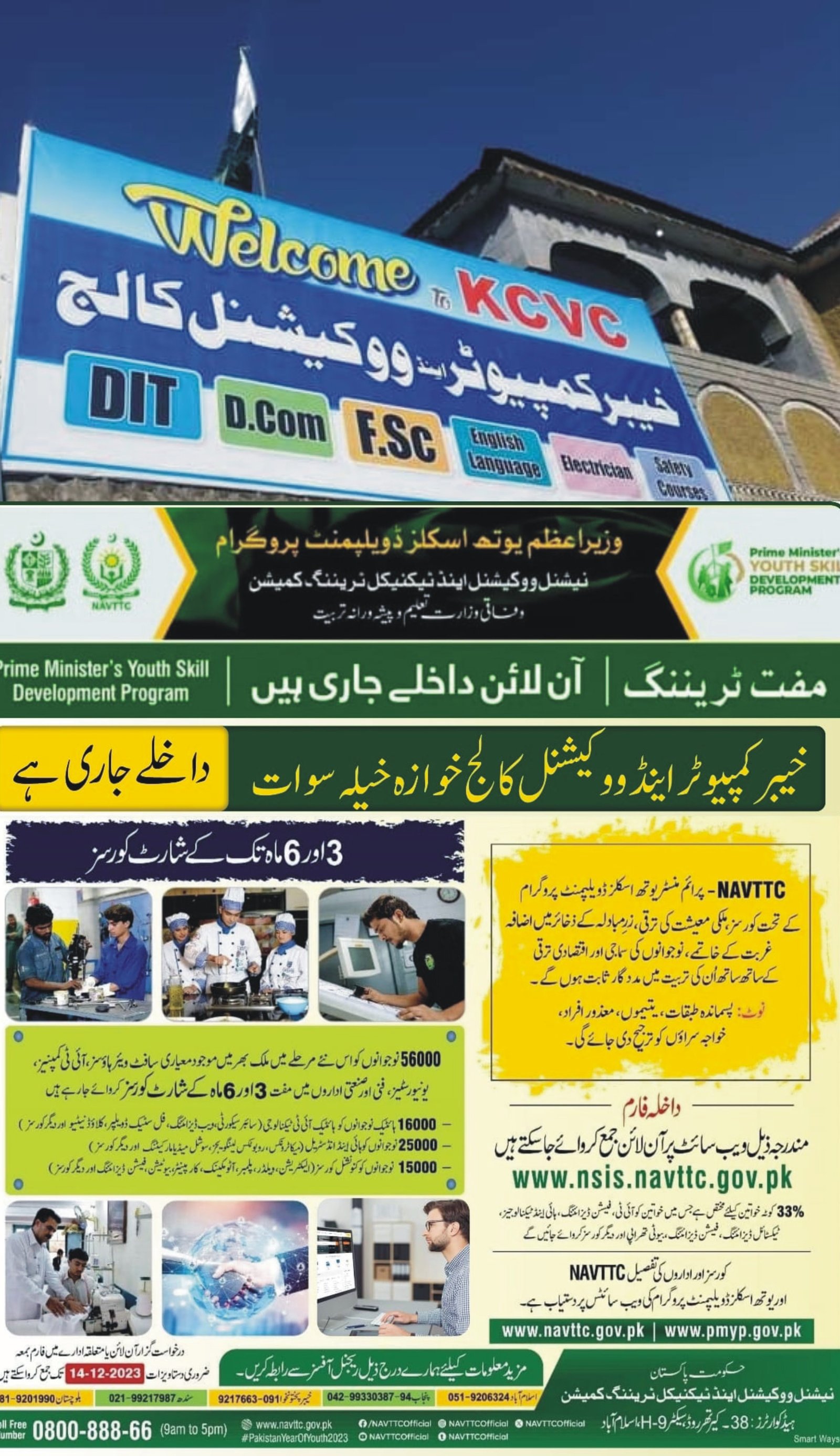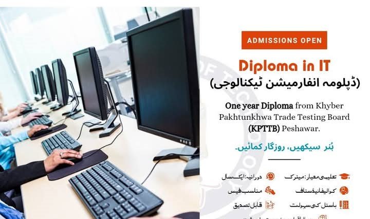 Admissions are now open in DIT(One year and Two years), CIT, Auto CAD, Safety courses, building electrician and Tailoring (Male)